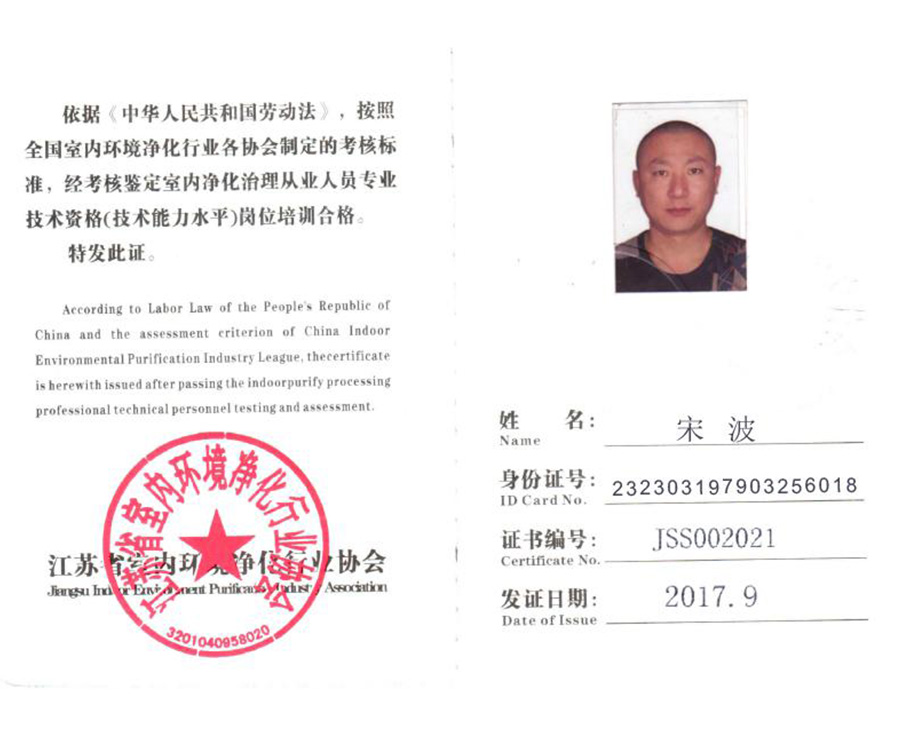室內凈化治理從業人員專業技術資格證
